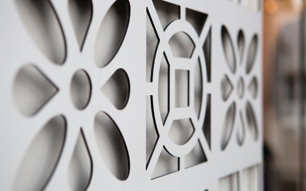 No projeto recebido da arquitetura contratada pelo cliente, elaboramos o projeto executivo. Para este projeto, utilizamos uma estrutura metálica pintada, fixada em frente à fachada original do imóvel, revestida em ACM branco fosco.